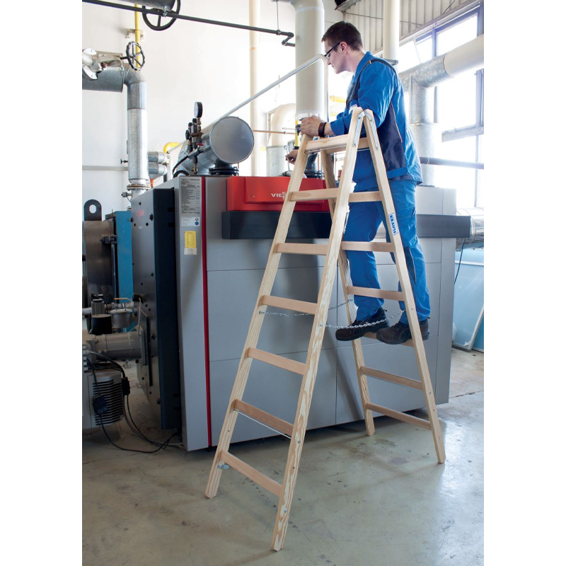 Scara de lemn dubla cu trepte pe ambele parti, 2x7 trepte
