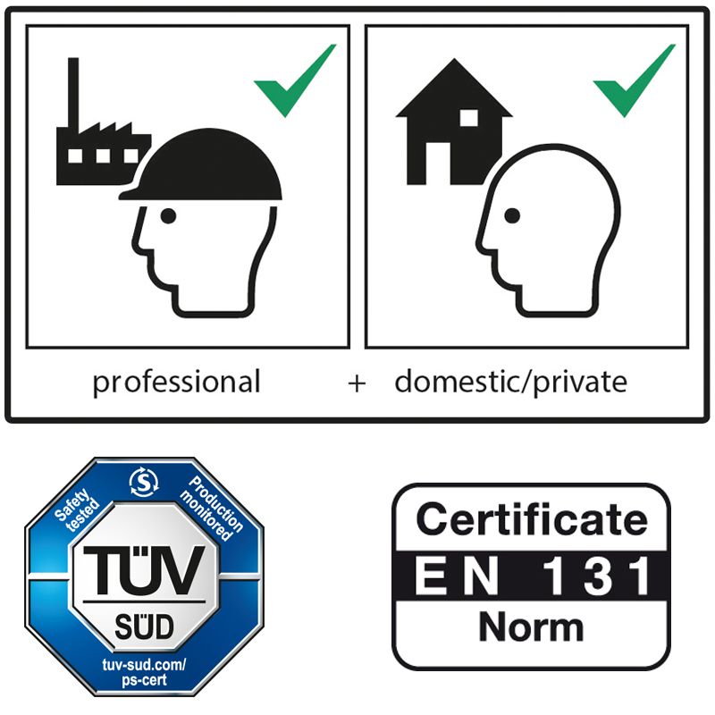 Scara corespunde standardului european EN 131 pentru scari, si este certificata TUV