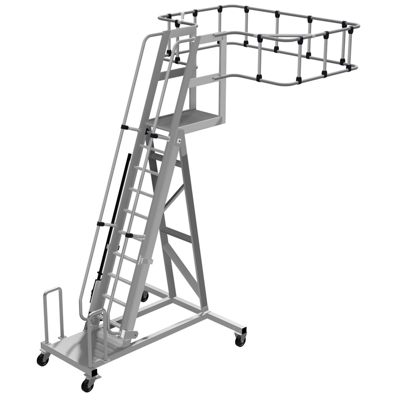 Scara pentru cisterne, STABILO, cos patrat, roti cauciuc, aluminiu tip gratar
